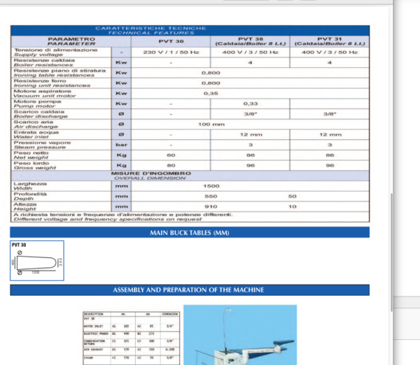 • Vacuum with high-depression motor at 0.37 KW – 0.5HP
